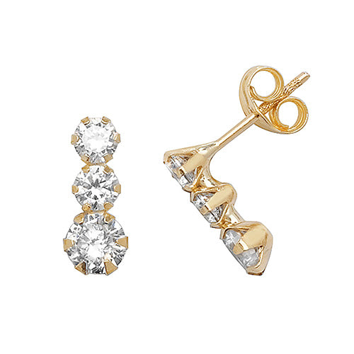 9ct Yellow Gold 3 Graduated Round CZ Stud Earrings SKU 1507109