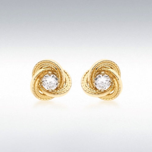 9ct Yellow Gold Rope Knot CZ Stud Earrings SKU 1507113
