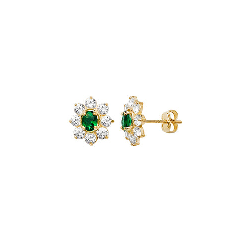 9ct Yellow Gold Green CZ & White CZ Flower Cluster Stud Earrings SKU 1507093