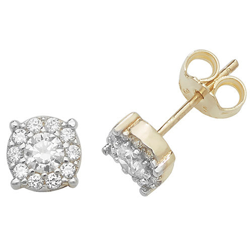 9ct Yellow Gold CZ Halo Cluster Stud Earrings SKU 1507099