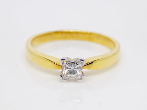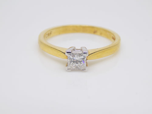 18ct Yellow Gold Princess Cut Diamond Solitaire Engagement Ring 0.33ct SKU 8803118