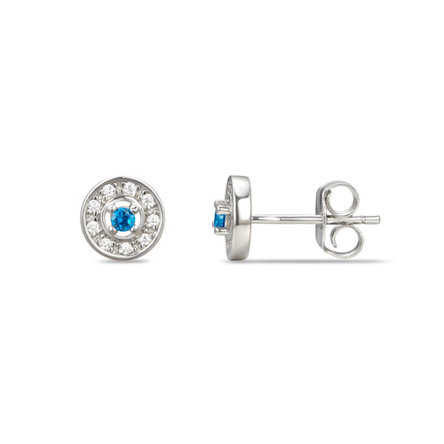 Sterling Silver Halo CZ Birthstone Stud Earrings