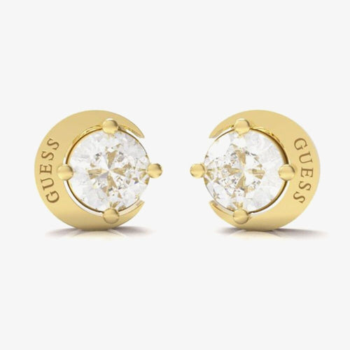 Guess Earrings Stainless Steel Gold Tone, Stone Set, Half Moon Circular SKU 3001669