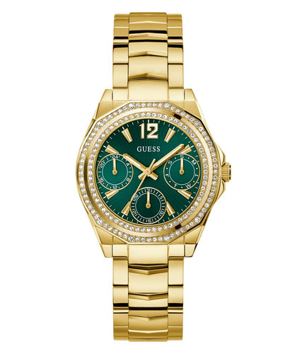 Ladies Guess Watch Stainless Steel Gold Tone Strap Green Dial Guess Watch SKU 4001396