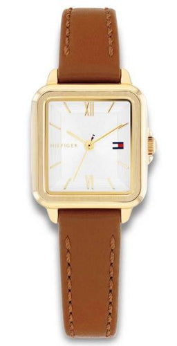 Tommy Hilfiger Ladies Watch, Tan Leather Strap, White Rectangle Dial SKU 4016330