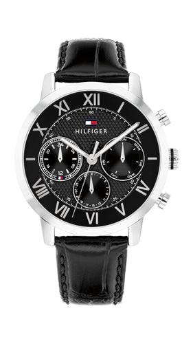 Tommy Hilfiger Gents Watch, Black Leather Strap, Black Dial, Mini Dials SKU 4016331