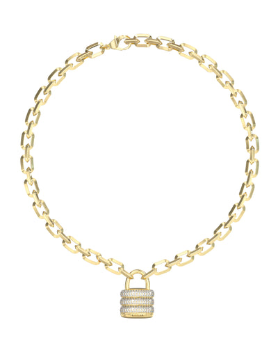 Guess Stainless Steel Gold Tone CZ Padlock Necklace SKU 3001655