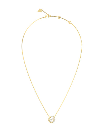 Guess Stainless Steel Gold Tone CZ Circle Heart Necklace SKU 3001659