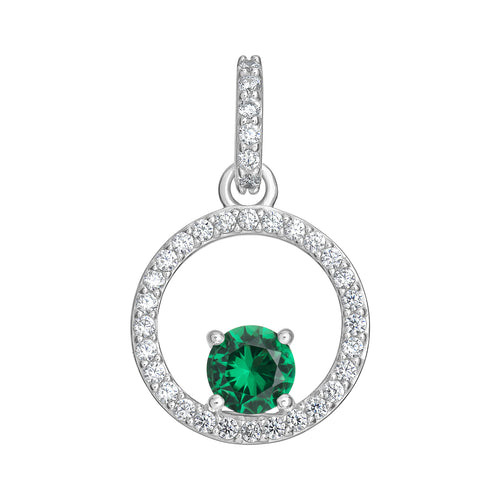 Sterling Silver Green CZ and CZ Halo Pendant SKU 0112735