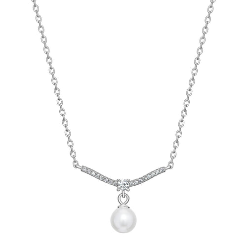 Sterling Silver CZ Bar and Synthetic Pearl Necklace SKU 0114274