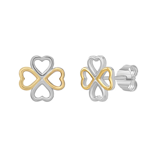 Sterling Silver 2 Tone Heart Clover Stud Earrings SKU 0106603