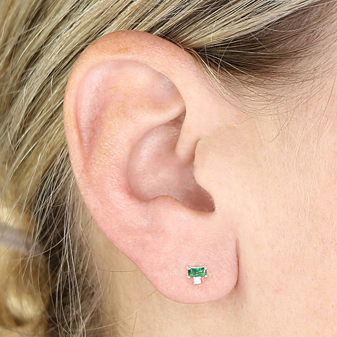 Sterling Silver rectangle green CZ and CZ Stud earrings SKU 0107613