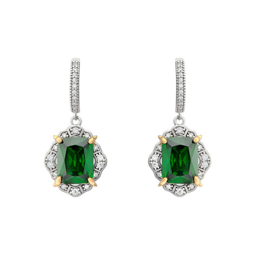 Sterling Silver Rectangle Green CZ ornate drop Earrings SKU 0107600