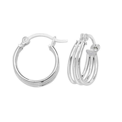 Sterling Silver Triple Row Hinged Hoop Earrings SKU 0110005