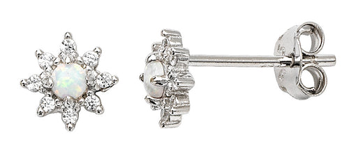 Sterling Silver Synthetic Opal & CZ Flower Stud Earrings SKU 0107239