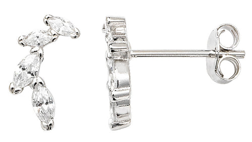 Sterling Silver Multi CZ Curved Stud Earrings SKU 0107246