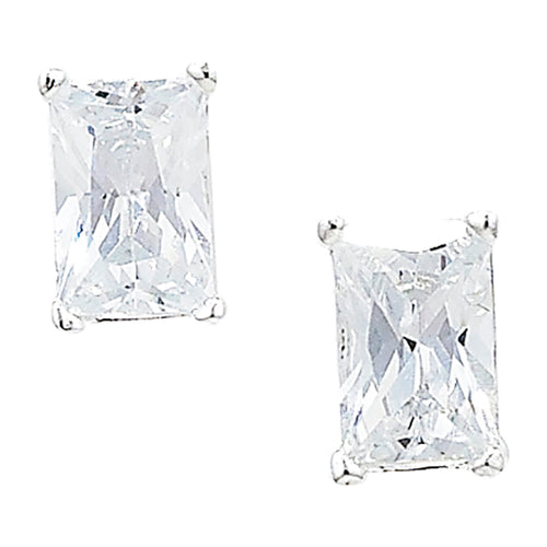 Sterling Silver 6*4mm Rectangle CZ Stud Earrings SKU 0107094