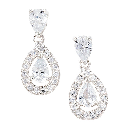 Sterling Silver Pear CZ Halo Drop Earrings SKU 0109200