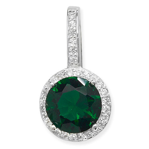 Sterling Silver Round Green CZ & CZ Halo Pendant SKU 0112355