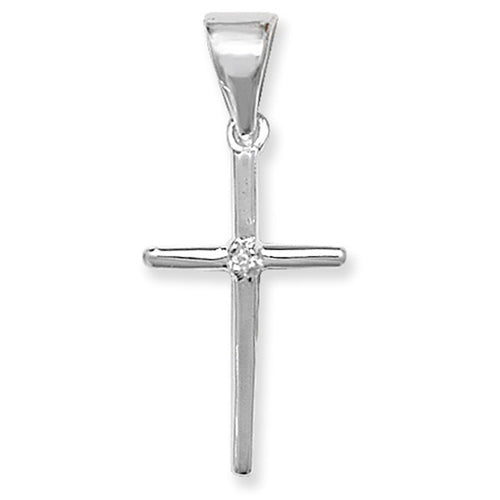 Sterling Silver CZ Cross With Heart Pendant SKU 0112028
