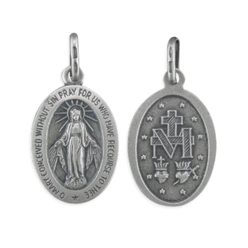 Sterling Silver Oxidised Oval Miraculous Medal SKU 0143005